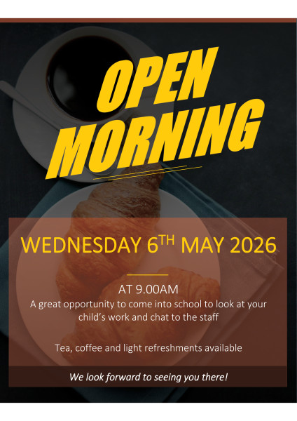 We are pleased to announce that our annual Open Morning will be held on Wednesday 6th May 2026, starting at 9:00am. Children are expected to attend the registration period at 8:45am as usual. Following this, we warmly invite parents to come into the school to view their children’s work and wall displays. Tea, coffee and light refreshments will be available in the art room for those who wish to partake. This event provides an excellent opportunity for all parents to engage with our staff, who will be available to answer any questions you may have about the curriculum and the various activities we conduct at school. We also encourage extended family members, such as grandparents, aunties and uncles, to join us and experience what our school has to offer. We look forward to seeing everyone there.