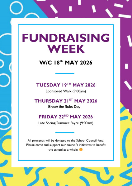 This half term, the School Council has organised a fundraising week to support our council's initiatives and benefit the school as a whole. We would greatly appreciate your support and involvement in our planned activities.