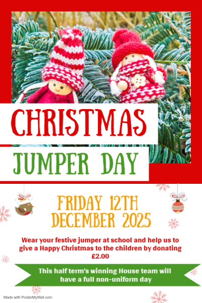 On Friday 12th December 2025 (the last day of term), we will be hosting a fun Christmas Jumper Day! On this day, the children are required to wear their school uniform as usual but may replace their blazers with festive jumpers. This half term’s winning House Team will have a full non-uniform day – we will inform you at the beginning of the last week which House this will be. As is tradition, Christmas Jumper Day is also an opportunity to support Save the Children. If you would like to contribute, feel free to send in a donation.