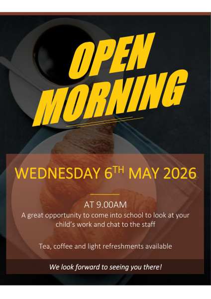 We are pleased to announce that we will be holding our annual Open Morning after Easter on Wednesday 6th May 2026. This event presents a wonderful opportunity for you to visit the school, spend time looking at your child’s work, and see what they have been achieving. The children genuinely enjoy the chance to showcase their accomplishments to you. Tea, coffee and refreshments will be provided during the morning. Further details regarding the schedule and timings will follow closer to the date. We look forward to welcoming you.
